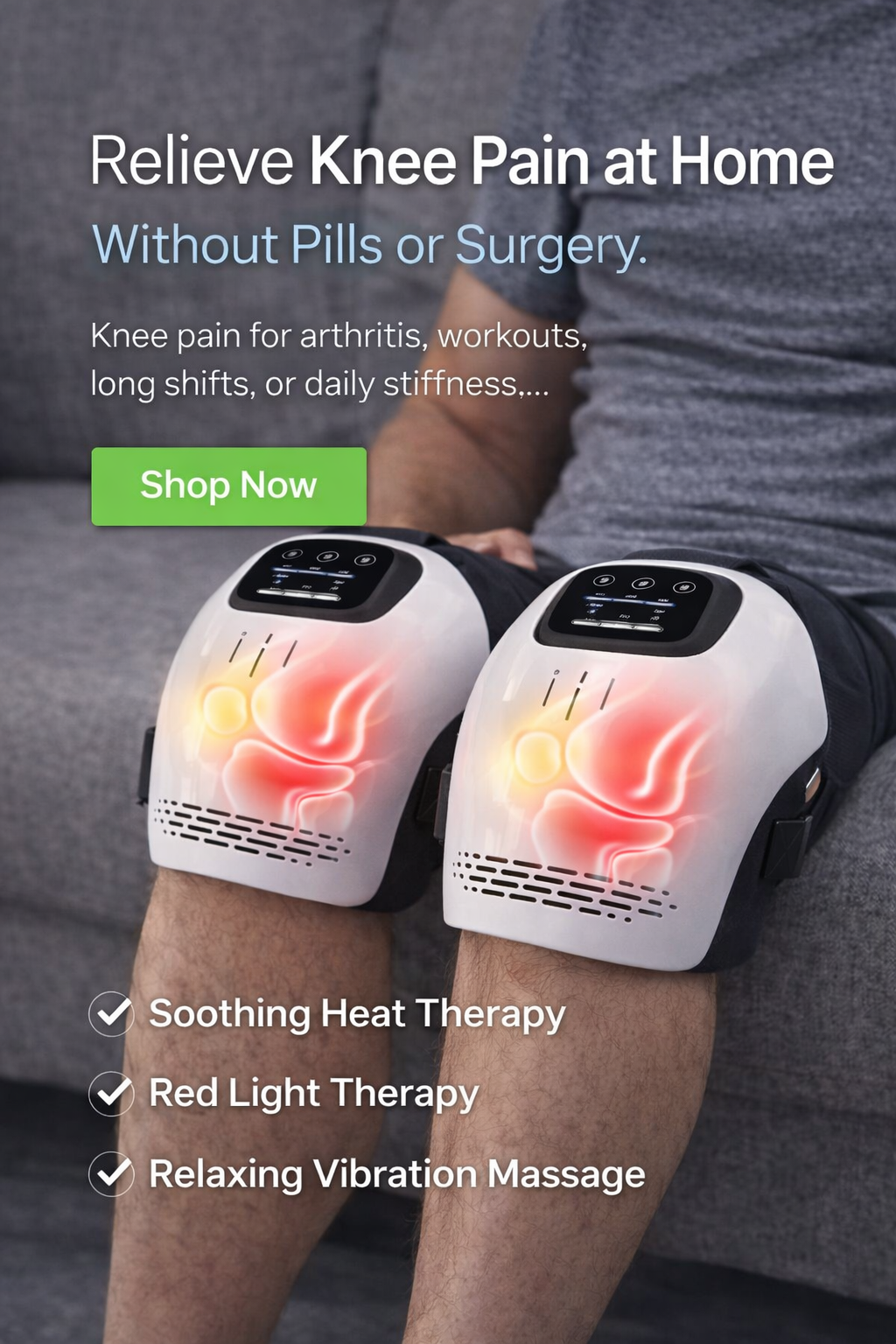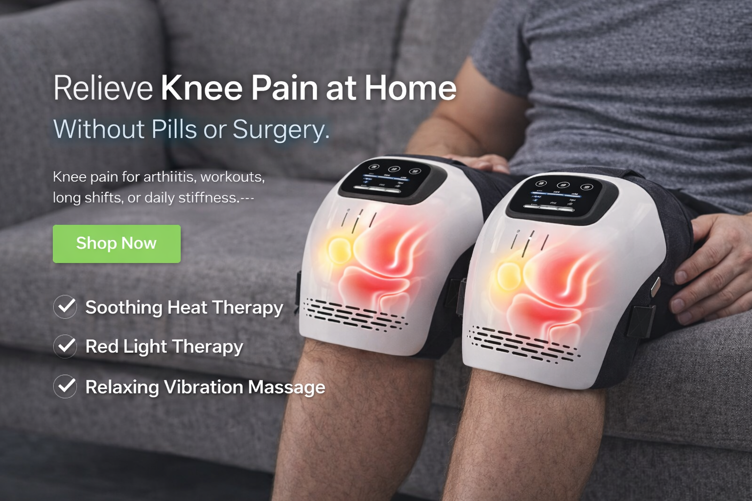 By combining gentle vibration massage with soothing heat, the massager helps relax tight muscles around the knee area. This targeted comfort supports better circulation and helps reduce everyday stiffness caused by long hours of standing, walking, or physical activity. Regular use promotes relaxed, comfortable knee movement.